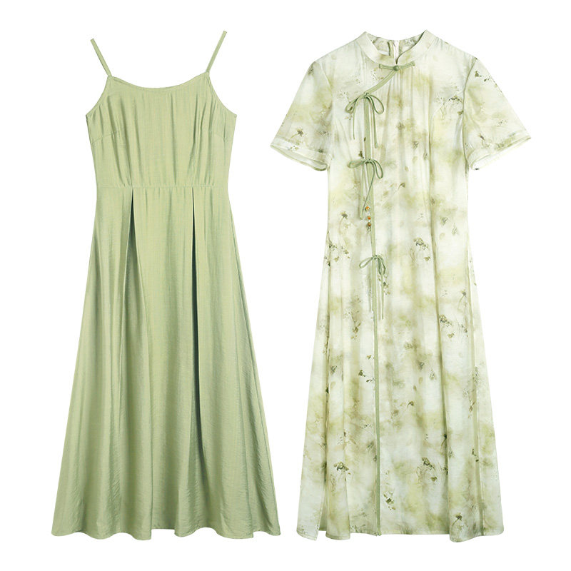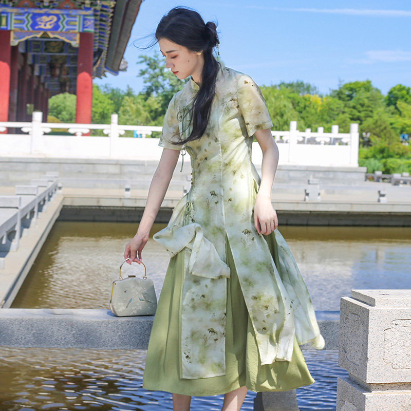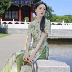 新款 旗袍2024年夏季 复古印花高级气质两件套裙子 新中式 戏幕起