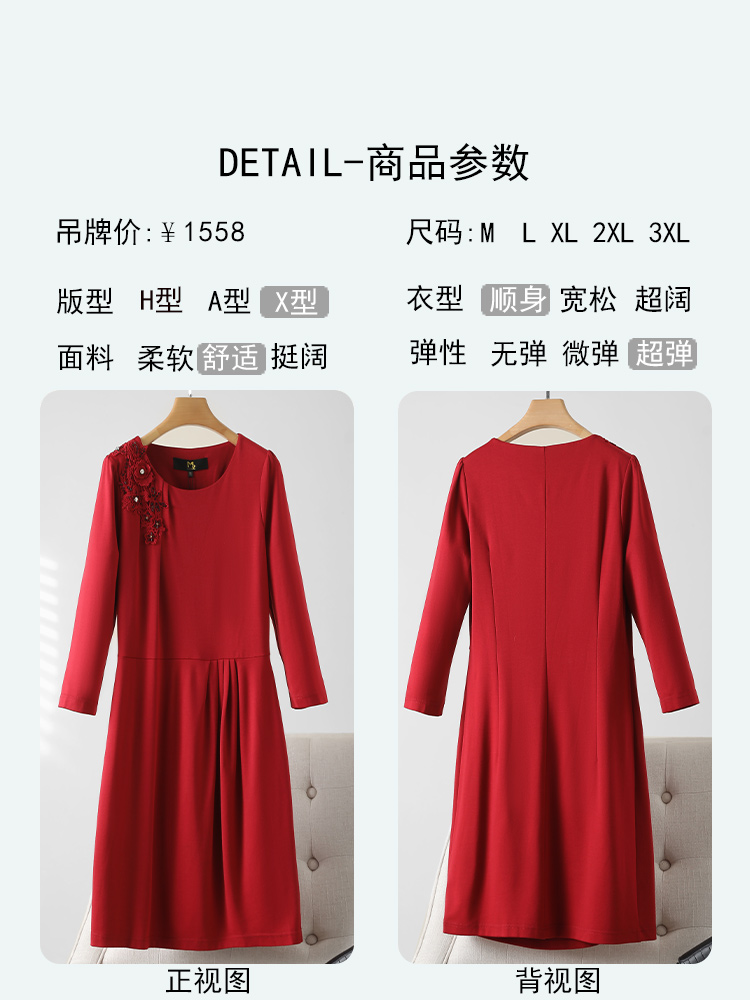 长袖 中长款 连衣裙 中年妈妈大码 M2折扣店春秋气质修身