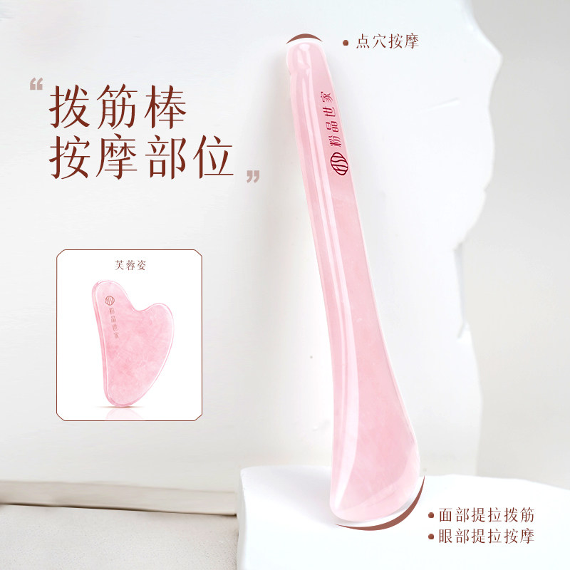 粉晶世家pink beauty天然粉水晶眼部拨筋棒面部刮痧点穴拨经棒