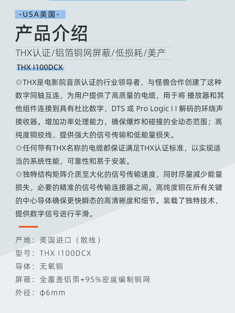 美产怪兽THX SDI视频高清音频线 I100DCX低损耗数字Ccoa同轴线HD