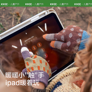 kt猫钻石毛绒手套儿童HelloKitty分指触屏女童冬加厚防风防寒保暖