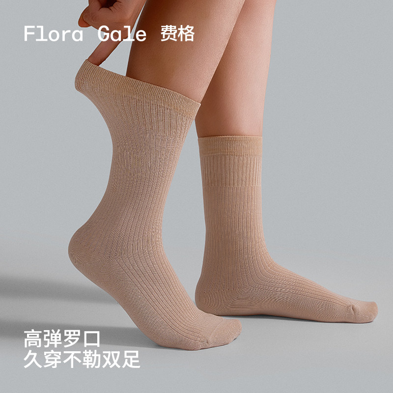 5双 费格袜子女士中筒袜吸汗夏防臭运动袜无骨袜子堆堆袜 7A抗菌