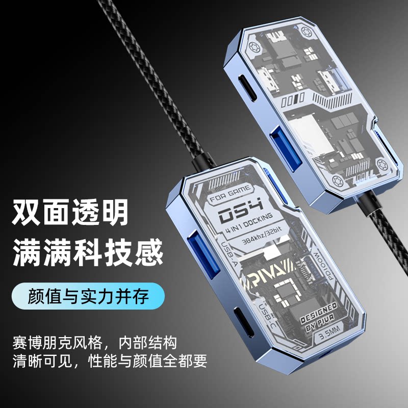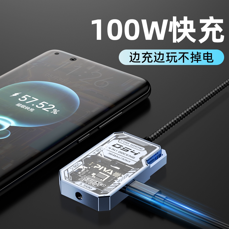 Piva派威DS4转接器Typec耳机转换器吃鸡游戏拓展坞四合一USB耳机适用于华为安卓苹果平板iPadpro开麦3.5mm