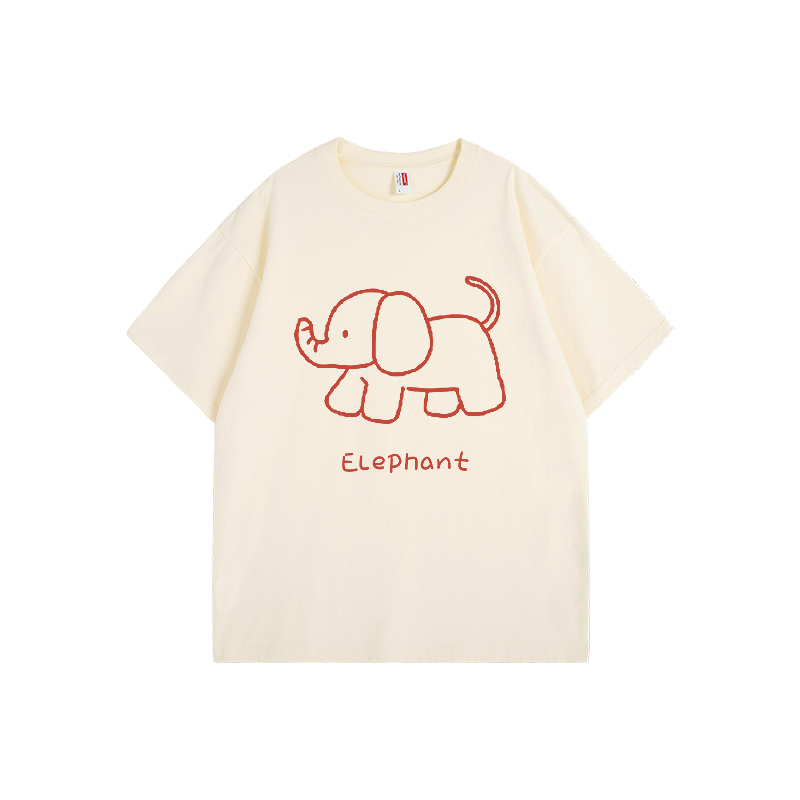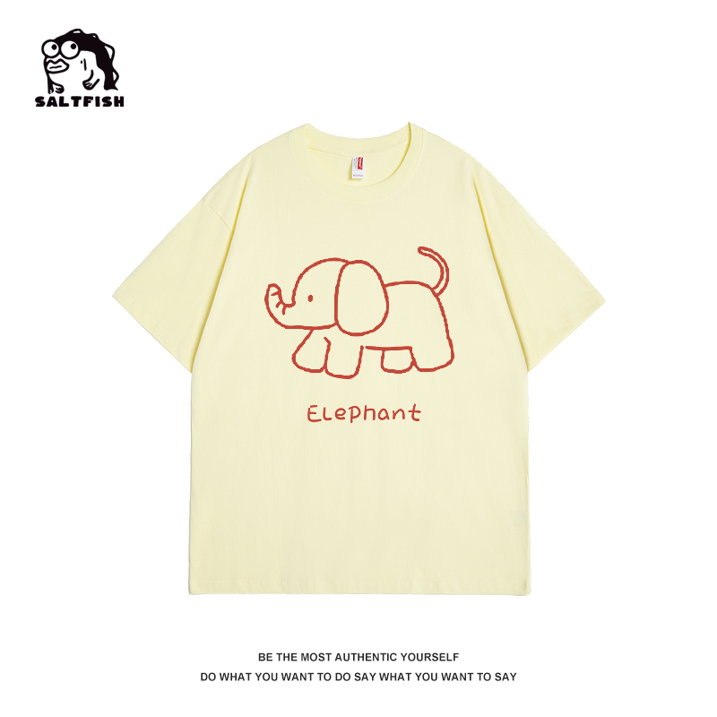 短袖 国潮宽松小众情侣装 T恤 趣味简约大象插画上衣女2025新款 SALT