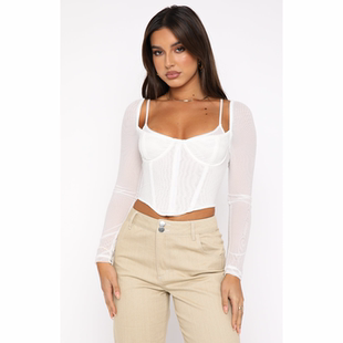 Well蕾丝鱼骨长袖 紧身显瘦胸衣外穿内搭吊带 reat 外贸原单WFT