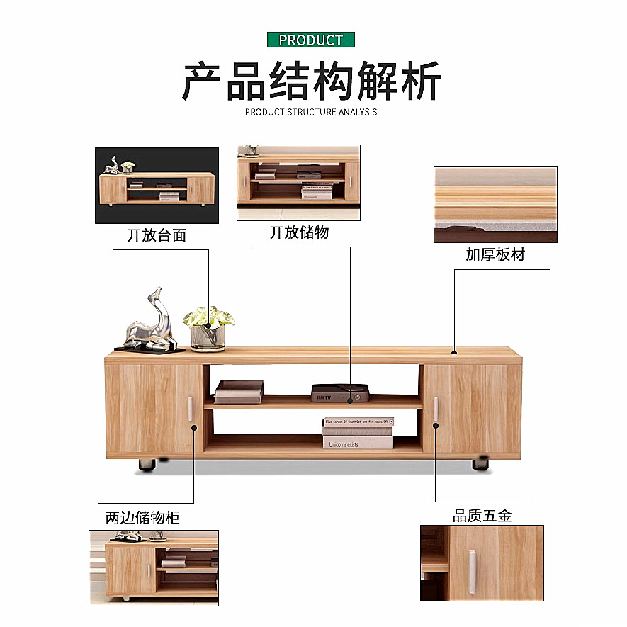 实木现代简约多功能储物电视柜小户型家用组合柜卧室靠墙加高柜子