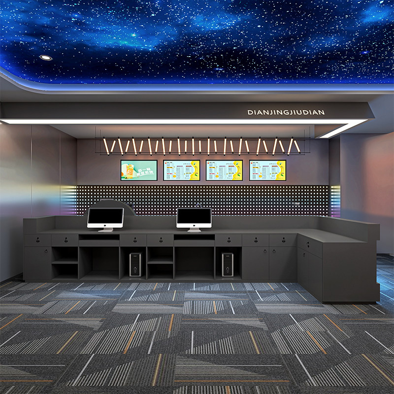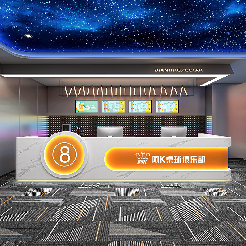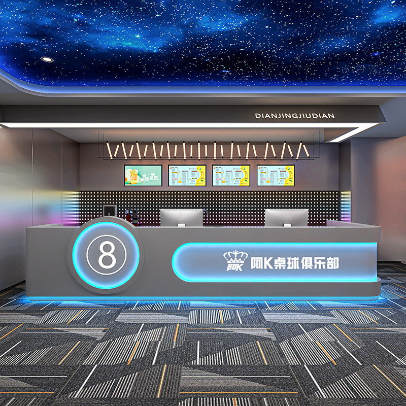 简约现代公司前台美容院接待台服装 店收银台转角吧台发光灯带柜台
