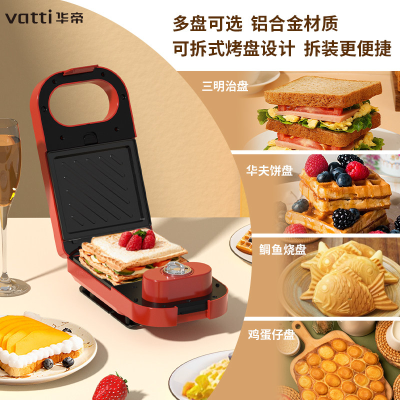 华帝三明治机可定时多功能双面加热压华夫饼可拆卸家用早餐机新款