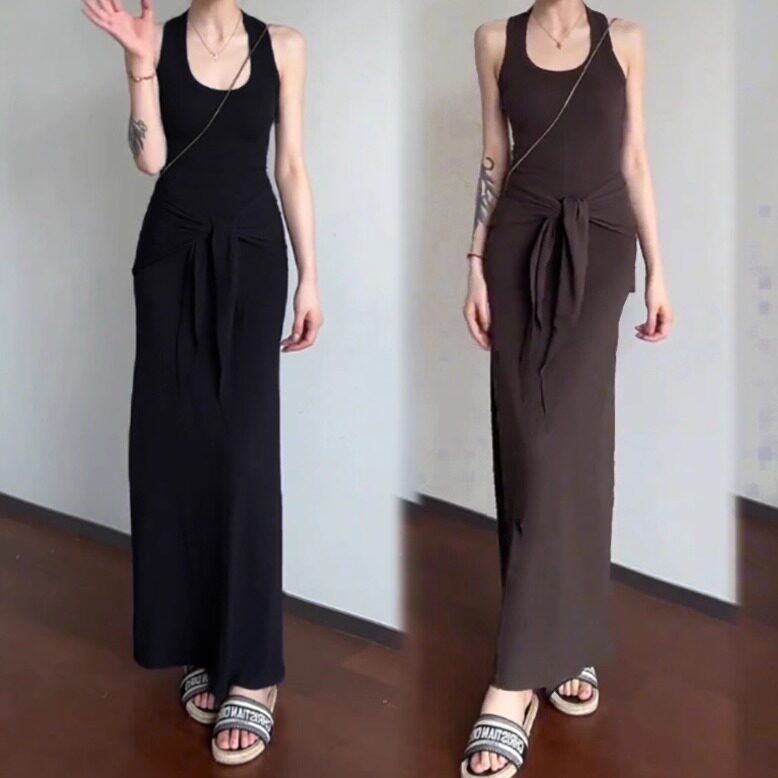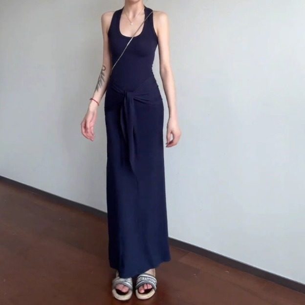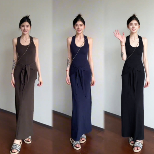女装 配披肩纯欲辣妹U领工字背心连衣裙长裙显瘦修身 棉高品质