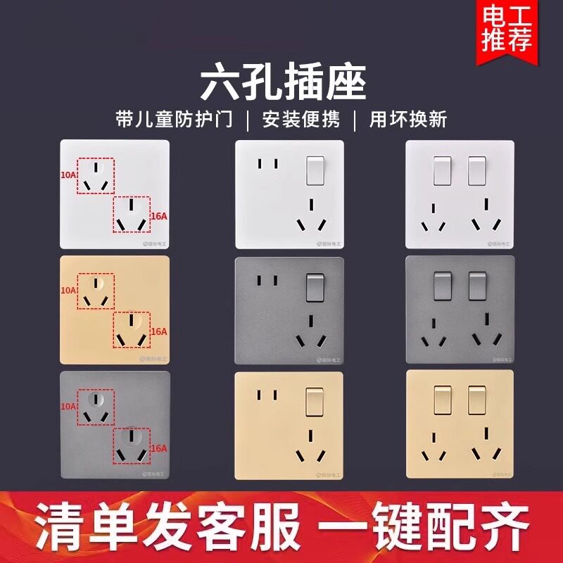 86型10A 错位斜六孔三三插空调热水器插座面板 16A大功率插座暗装
