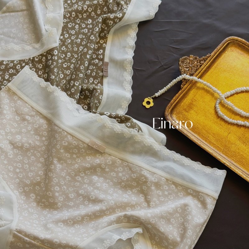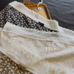女莫代尔透气抑菌纯棉裆中腰3条装 Einaro法式 蕾丝边复古碎花内裤