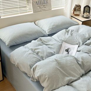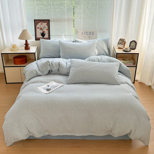 A类无印风床上四件套全棉纯棉新款 床单被套罩床笠学生宿舍三件套4