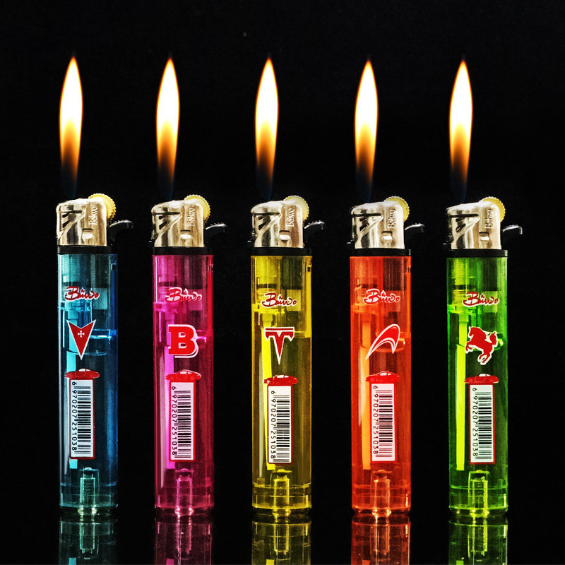 创意充气打火机超市热卖 新款 迷你透明砂轮椭圆柱明火打火机个性