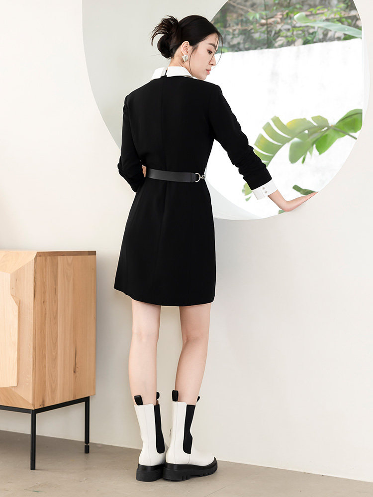 连衣裙假两件翻领衬衣领通勤外套裙子 奕辰纯色简约西装 清仓