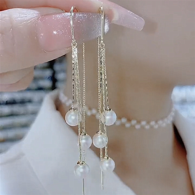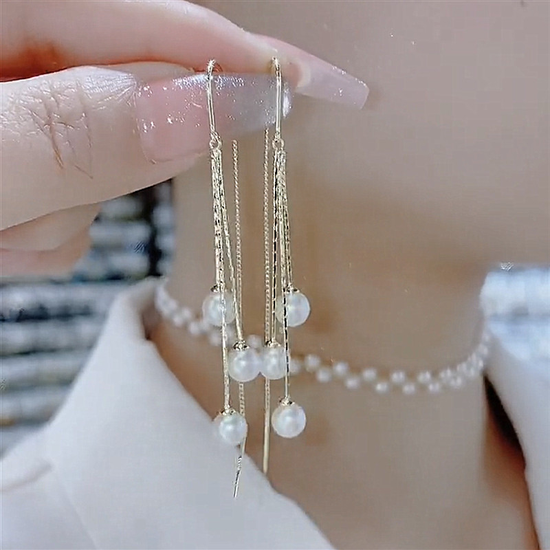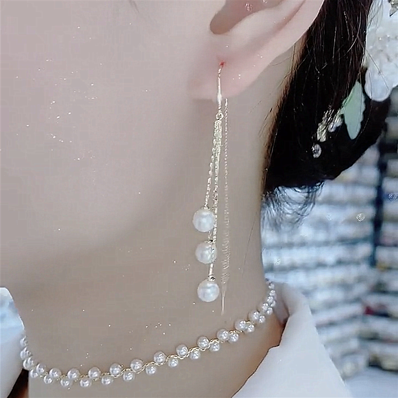 2024新款 圆脸显瘦耳线耳饰耳坠女 潮超仙珍珠流苏耳环韩国气质长款
