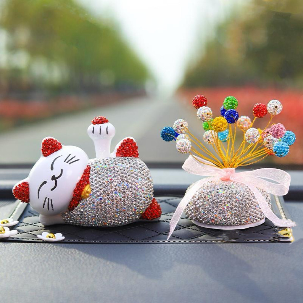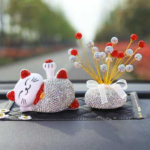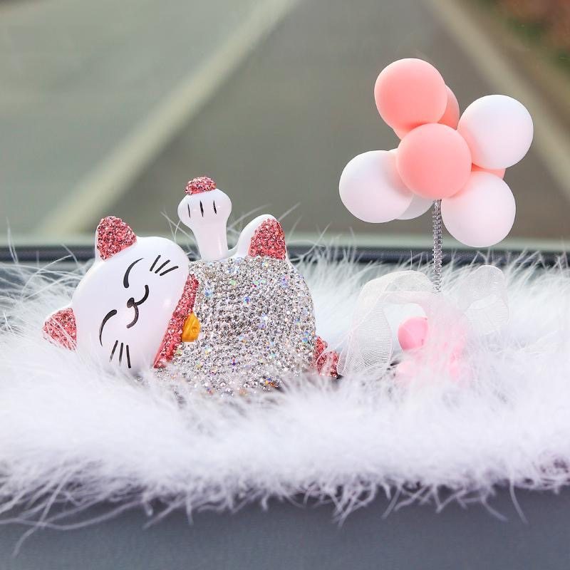 新年汽车中控台摆件招财猫创意车载毛毛垫装 饰可爱高档车上用品女