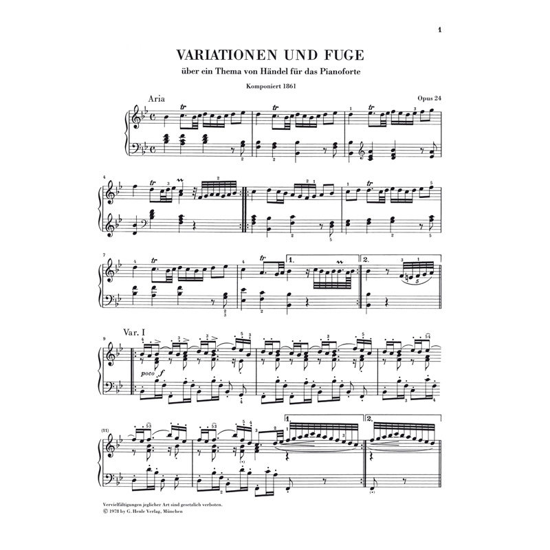 Handel HN272 亨德尔变奏曲op24 op. Variations Brahms 带指法 钢琴独奏 勃拉姆斯 亨乐原版