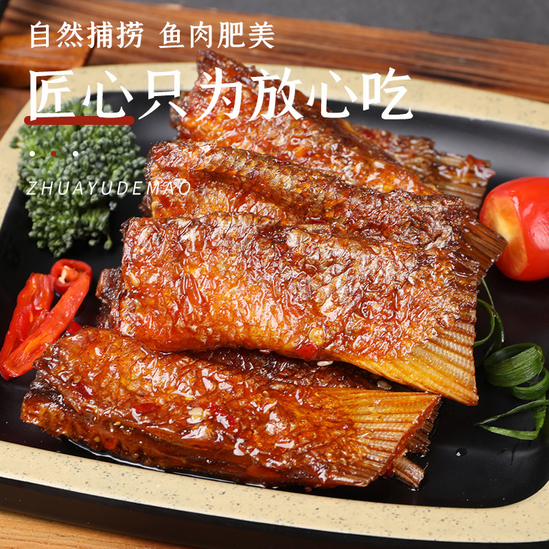 700g香辣鱼排鱼尾鱼块零食即食麻辣小吃特产下饭菜 猫 抓鱼