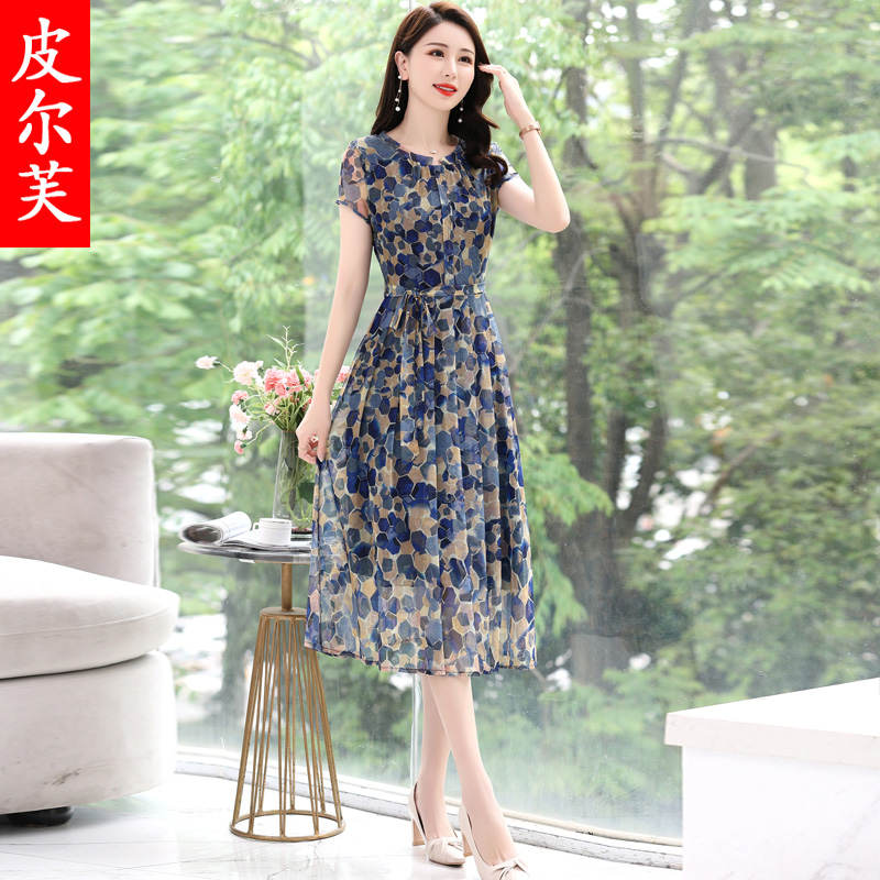 大码 女士气质洋气收腰显瘦薄款 网纱长裙子 新款 碎花连衣裙2024夏季