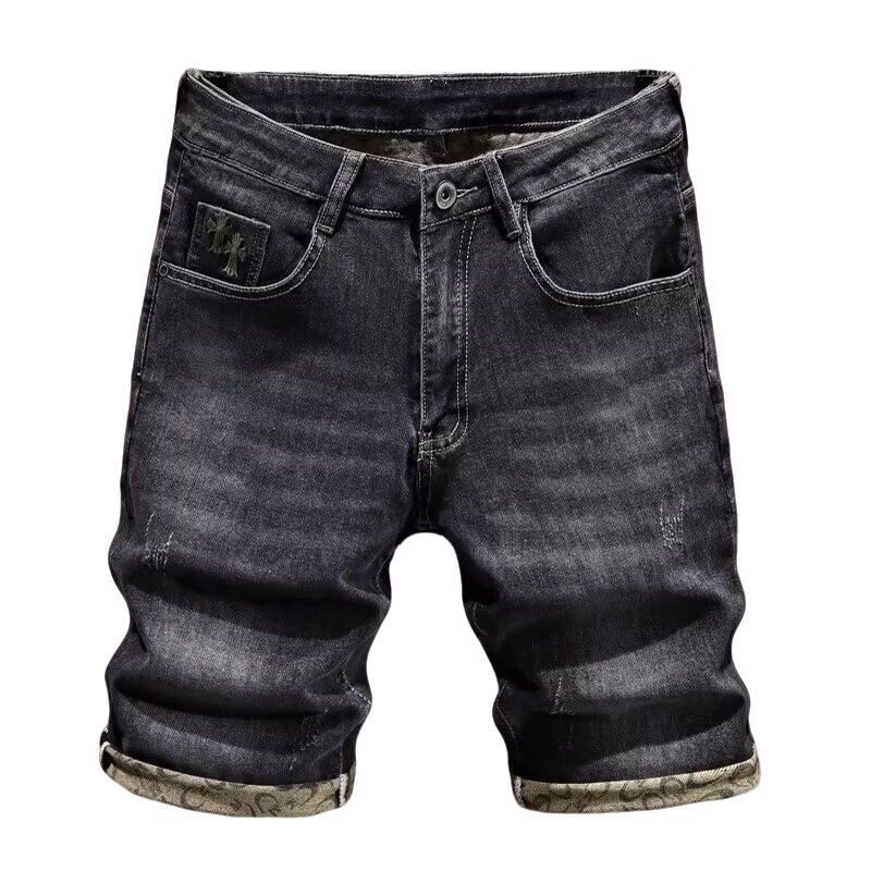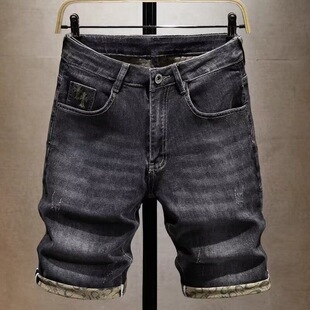 薄款 弹力休闲中裤 潮牌灰色刺绣牛仔短裤 修身 男网红百搭五分裤 夏季