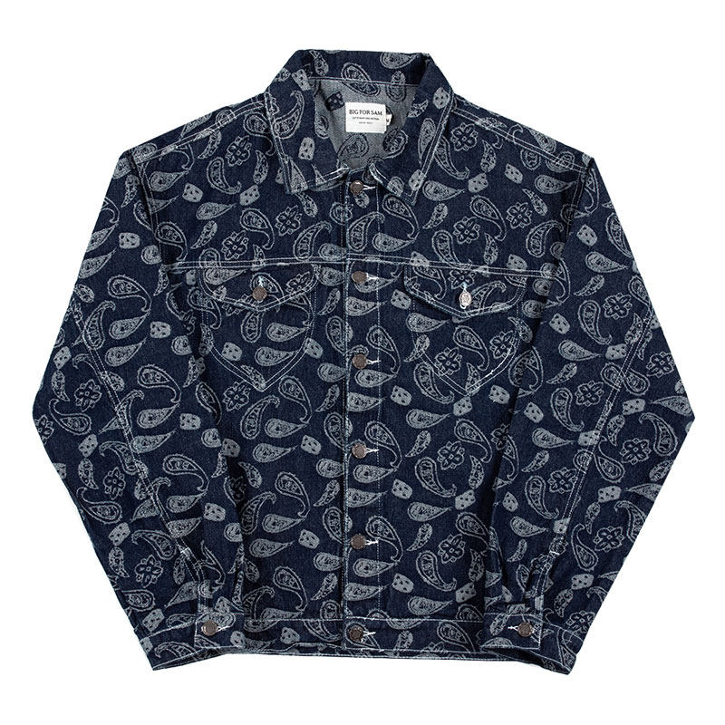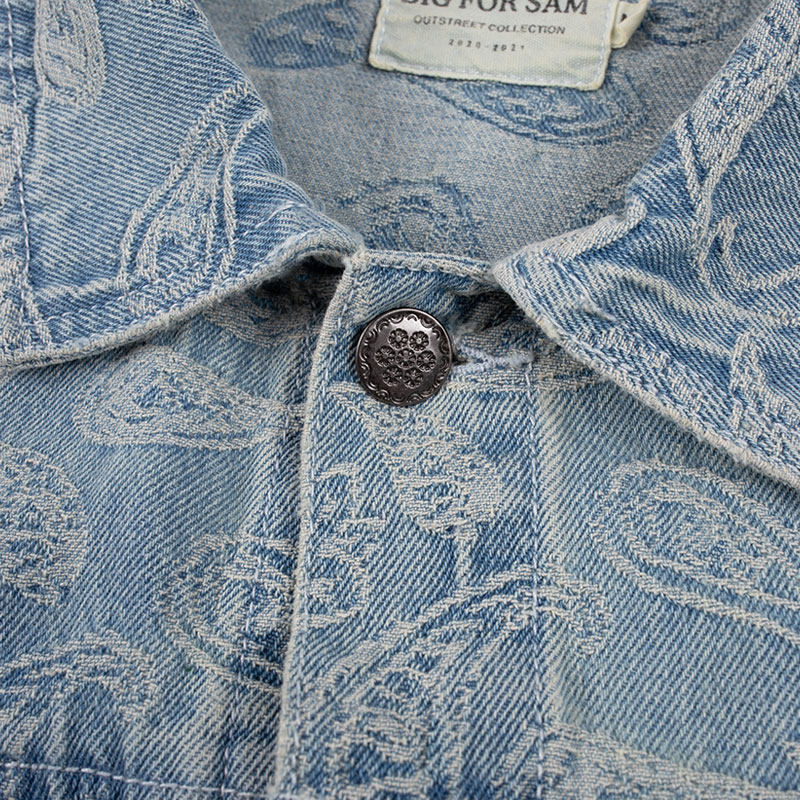 高街宽松水洗做旧嘻哈外套 SAM腰果花牛仔夹克男潮牌美式 BIG FOR