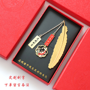圣诞节山海经瑞兽故宫金属黄铜书签精致高档礼盒定制刻字精美古典中国风创意文创送老师学生纪念品商务礼品