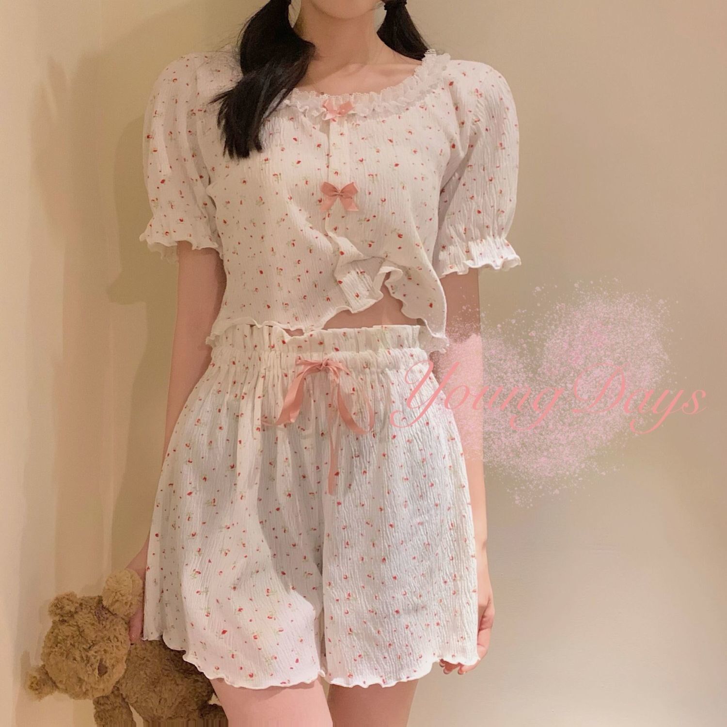 件套家居服两睡衣 短裤 网红纯欲风少女蕾丝碎花夏季 女甜美可爱薄款