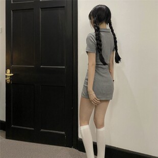 修身 微胖显瘦纯欲辣妹包臀裙韩版 性感开叉连衣裙女 短袖 POLO领新款