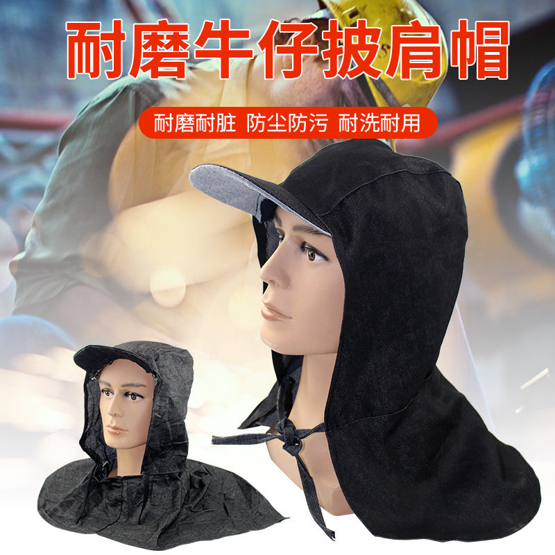防尘披肩帽牛仔布披风帽男女搬运工作装 卸水泥劳保喷漆打磨帽子