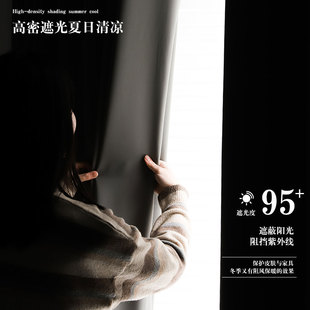 卧室窗帘免打孔安装 飘窗遮阳布 简易伸缩杆一整套全遮光2024年新款