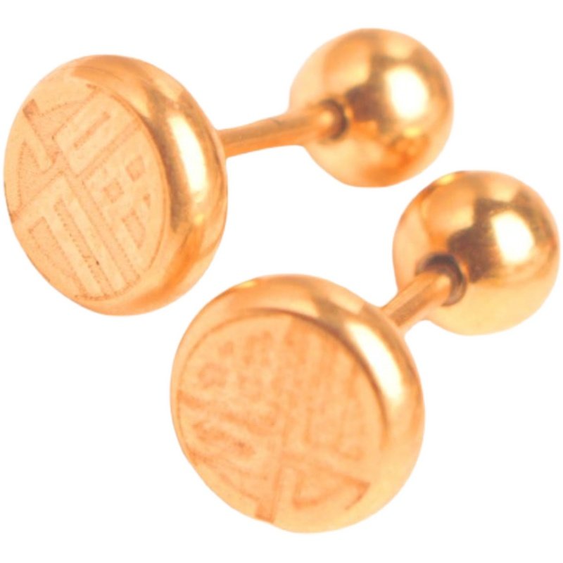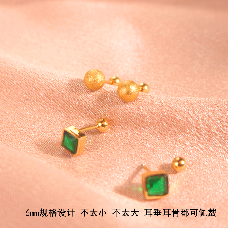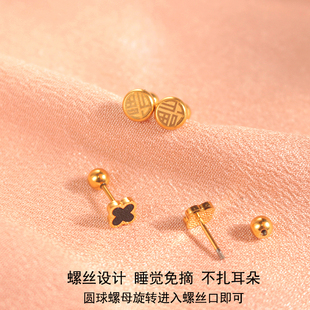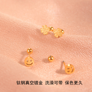 迷你耳骨钉钛钢螺丝拧扣细针耳钉女笑脸福字圆球睡觉免摘金色耳饰