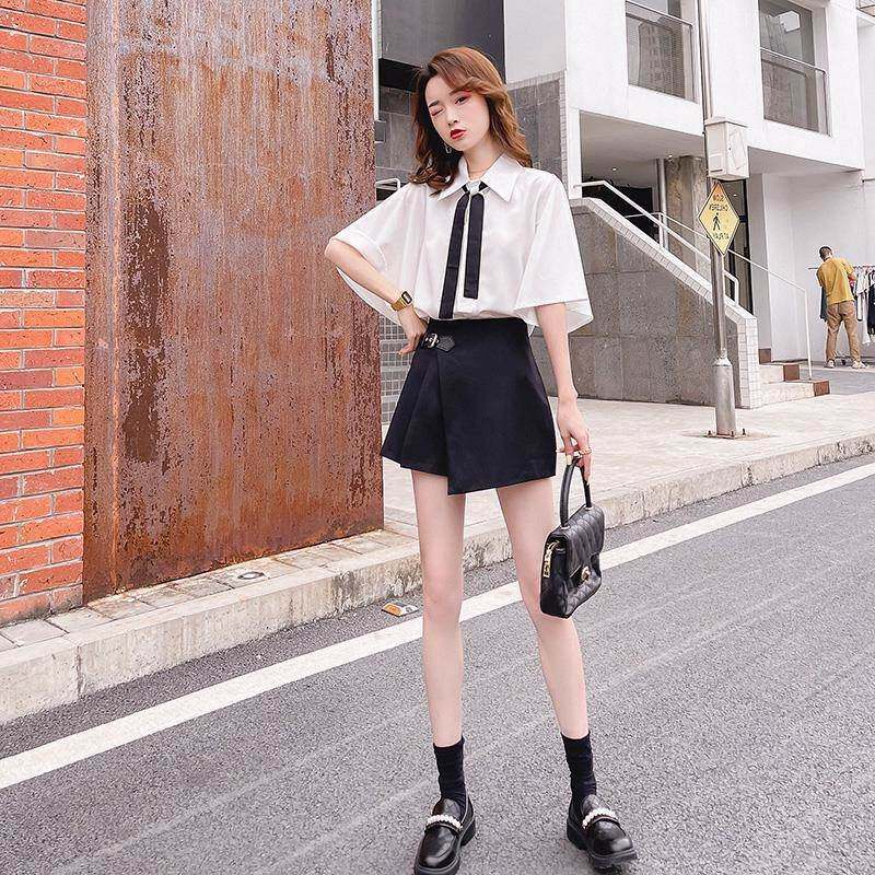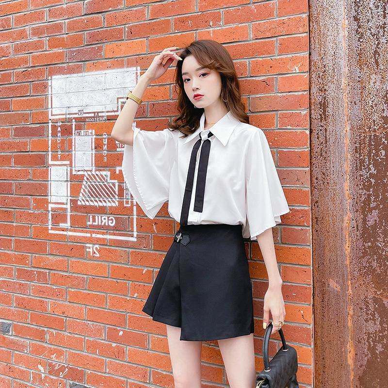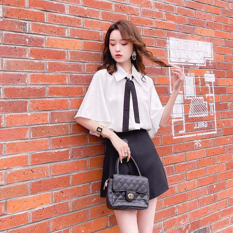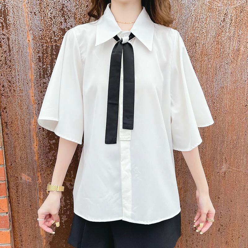 2026年夏季 白色短袖 洋气新款 女士设计感小众上衣时尚 衬衣 领带衬衫