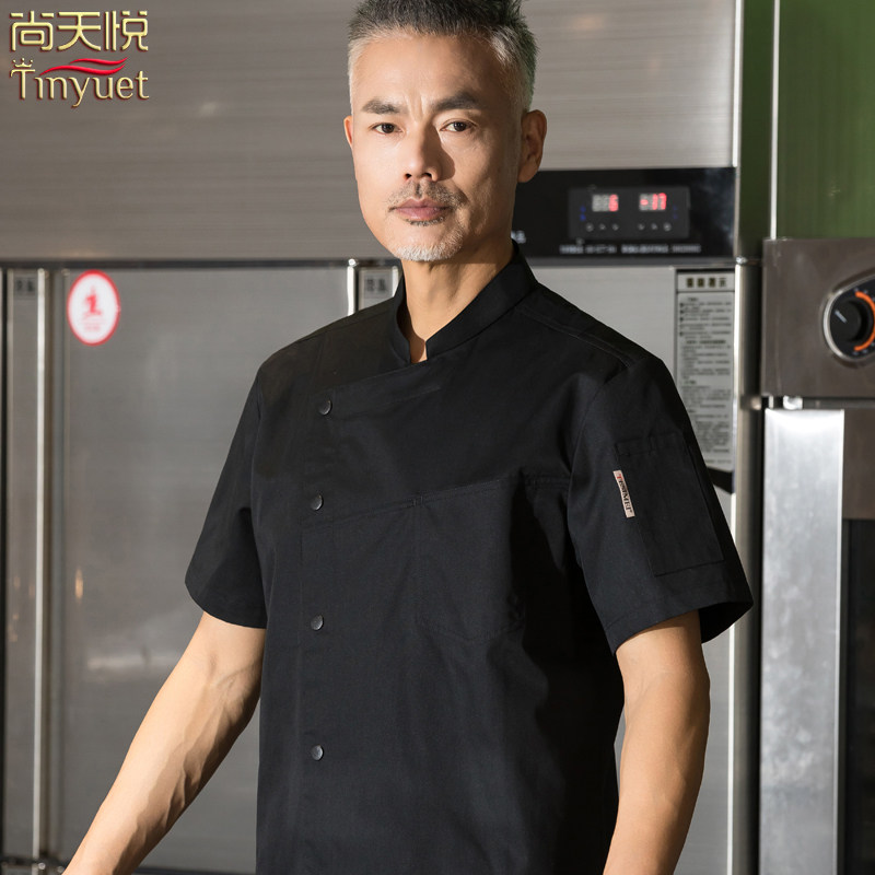 透气夏装 时尚 餐饮后厨房厨师服装 夏季 酒店铁板烧厨师工作服男短袖
