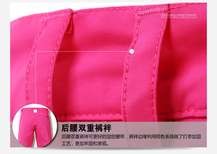 探路者骚粉色防风单层多功能滑雪裤 冲锋裤