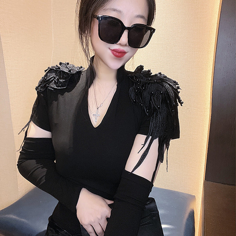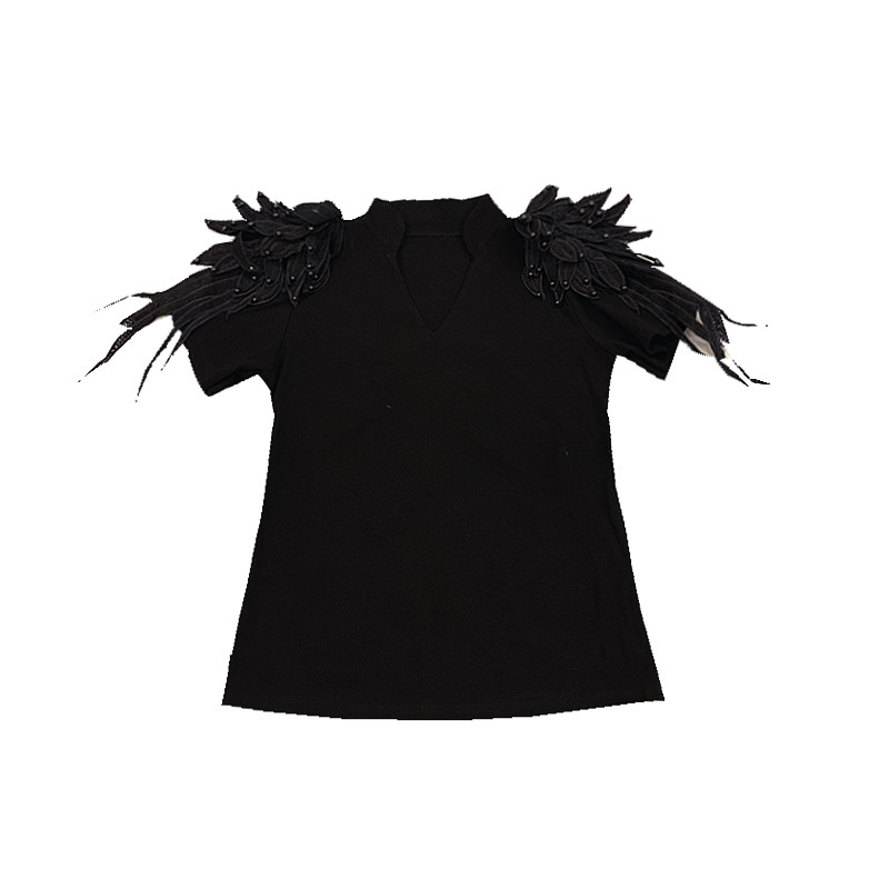 肩章镶钻短袖 2024春夏新款 t恤洋气女装 上衣半袖 潮 时尚 打底衫 小衫