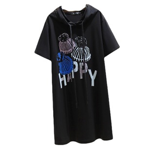 女装 350斤特大码 长款 连帽衫 休闲显瘦T恤 2025夏季 300胖mm韩版 新品