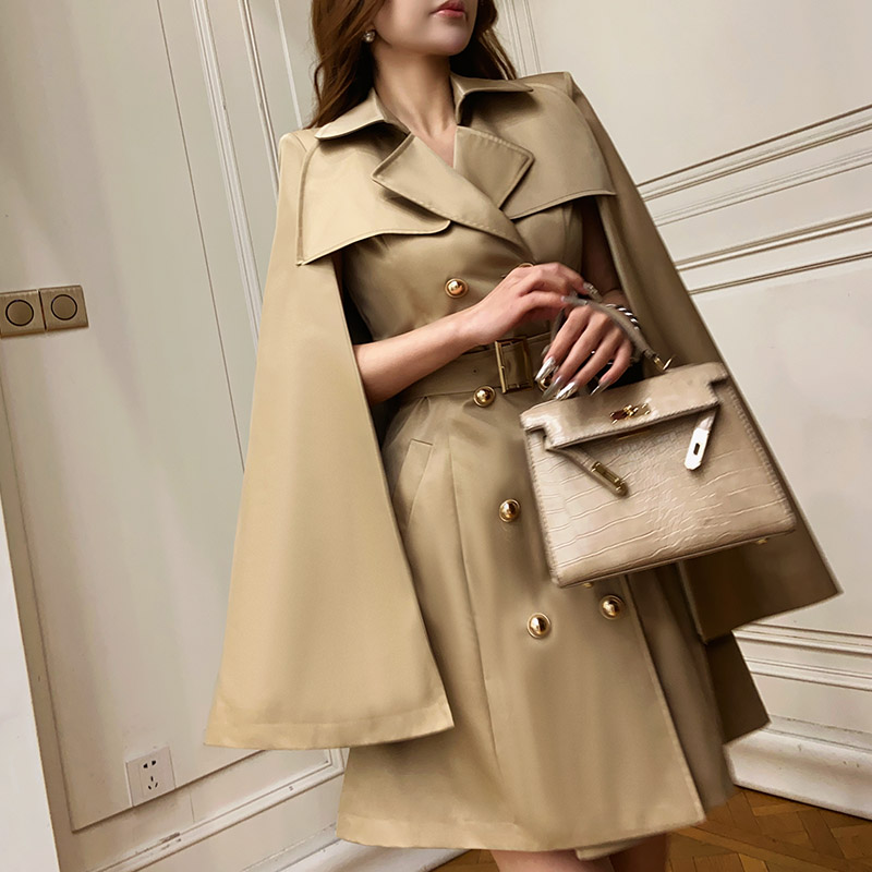 2025新款 粉红大布娃娃英伦风气质通勤斗篷式 双排扣风衣外套女秋季