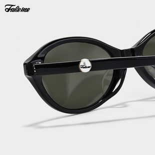 2025复古美式 金属小框圆脸墨镜女高级椭圆防晒街拍凹造型太阳眼镜