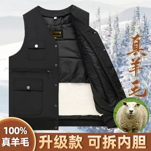 冬季 皮毛一体马甲男中老年羊毛背心加厚保暖棉坎肩羊皮马夹爸爸装