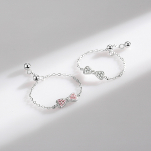 个性 小清新甜美可爱时尚 ins 925纯银微镶蝴蝶结戒指女韩版 MODIAN
