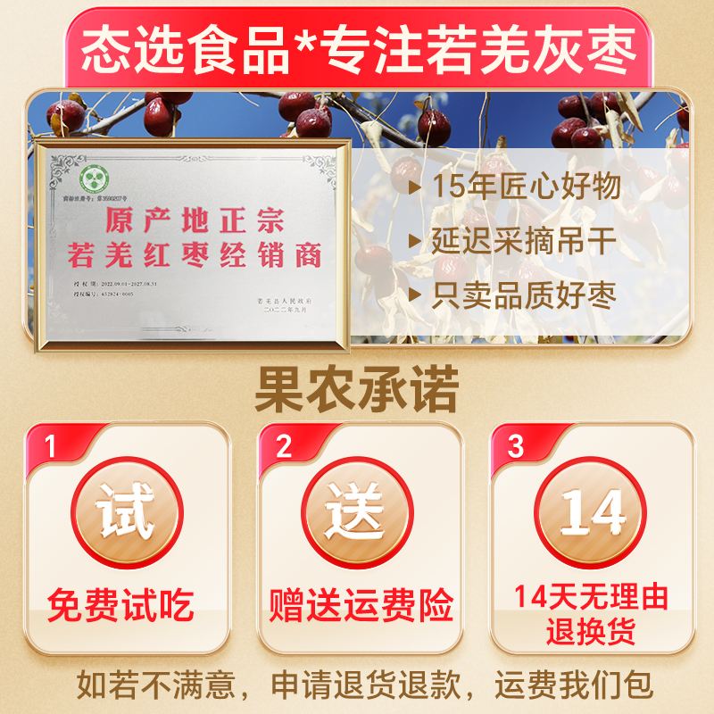 店铺掌柜:  态选食品新疆果园15年自有种植红枣店