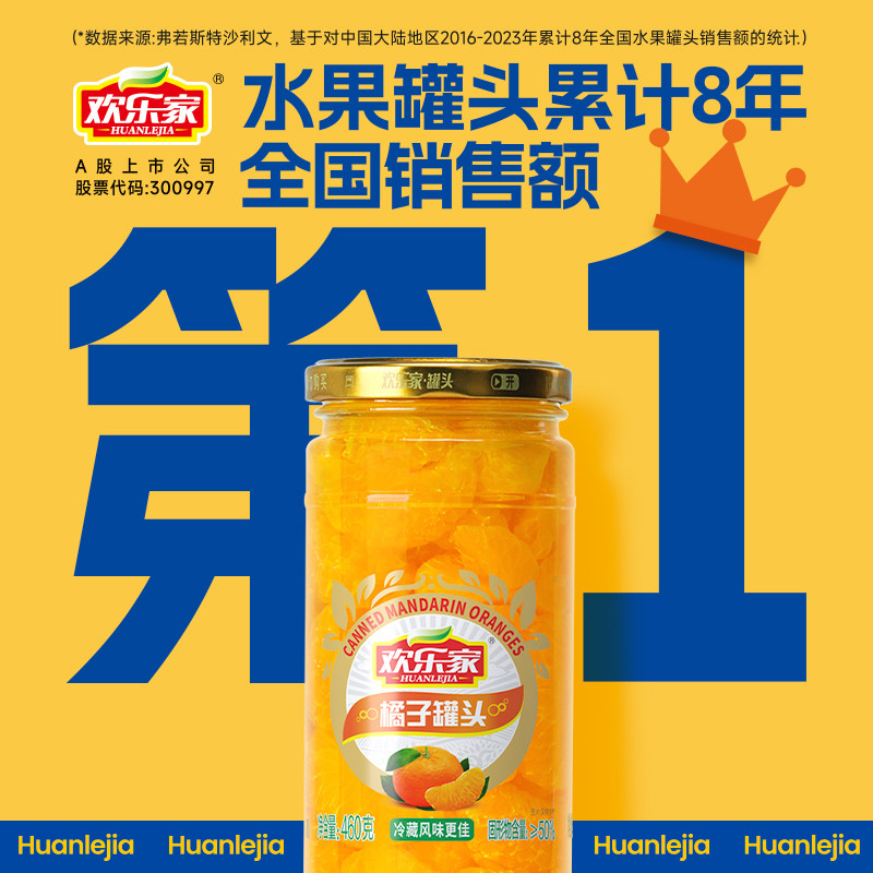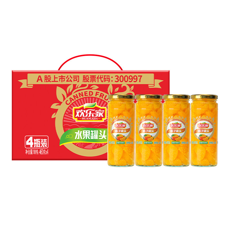 欢乐家糖水橘子罐头460g 4罐休闲零食整箱新鲜开盖即食手提礼盒装