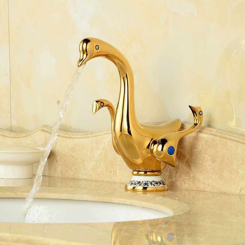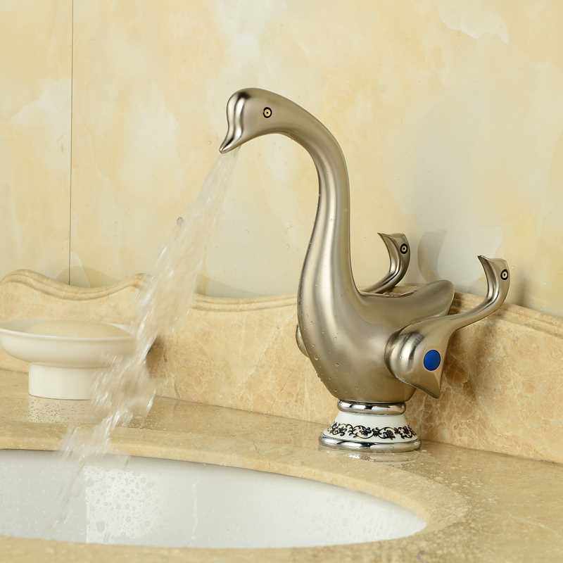 Double Handles Bathroo Cute Sink Shape Vessel Faucet Duck