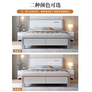 1.8米现代简约主卧储物双人床1.5单人经济型家用收纳高箱床实木床