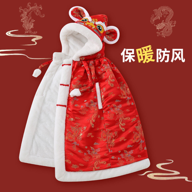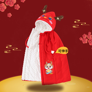 婴儿披风斗篷秋冬季 新生儿外出防风加厚男儿童外套连帽女宝宝抱被