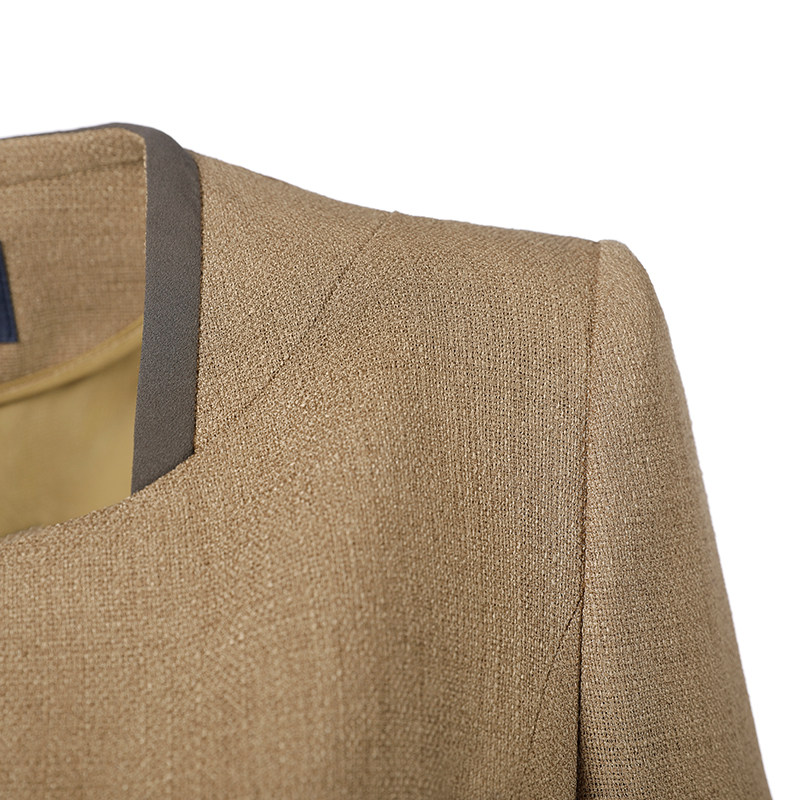 LIANGNUO靓诺职业拼接领边黄色麻感西装 外套LS14466A