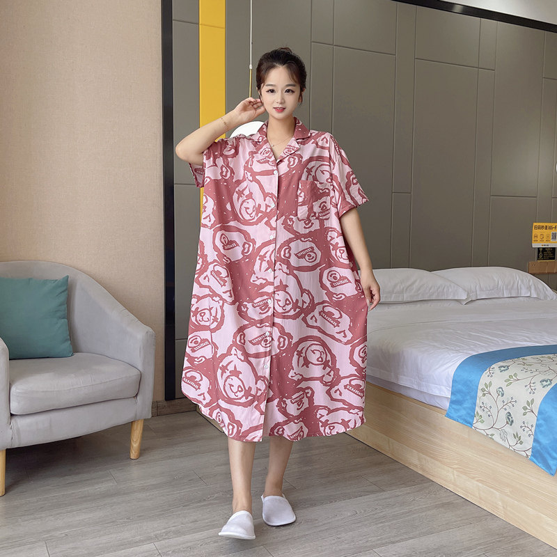 连衣裙宽松睡衣家居服 甜美A类纯棉短袖 俞兆林7A抗菌睡裙夏季 女款