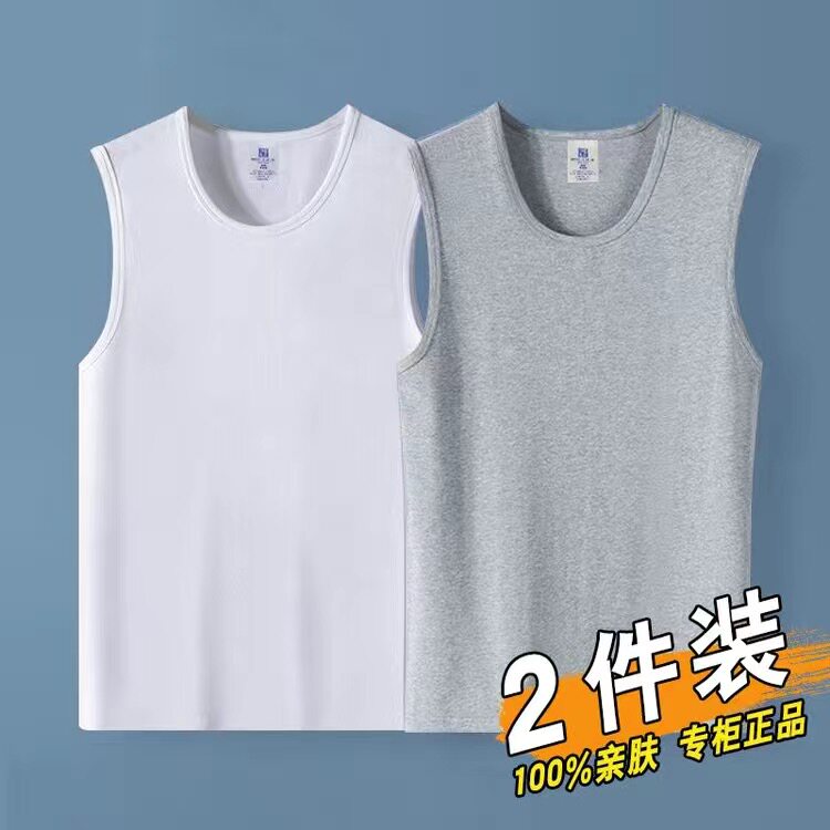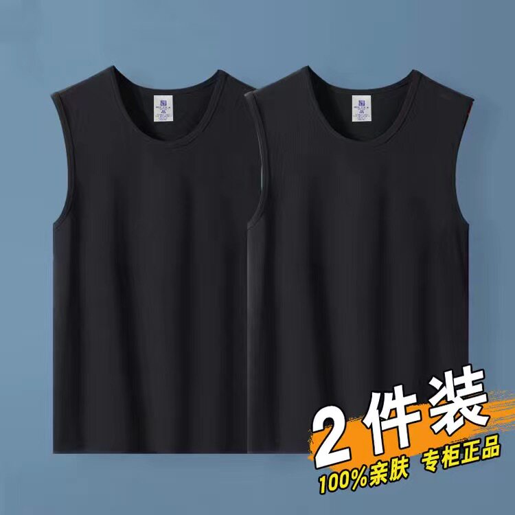 无袖 圆领套头背心运动汗衫 中青年修身 夏季 薄款 男打底衫 2件 新款