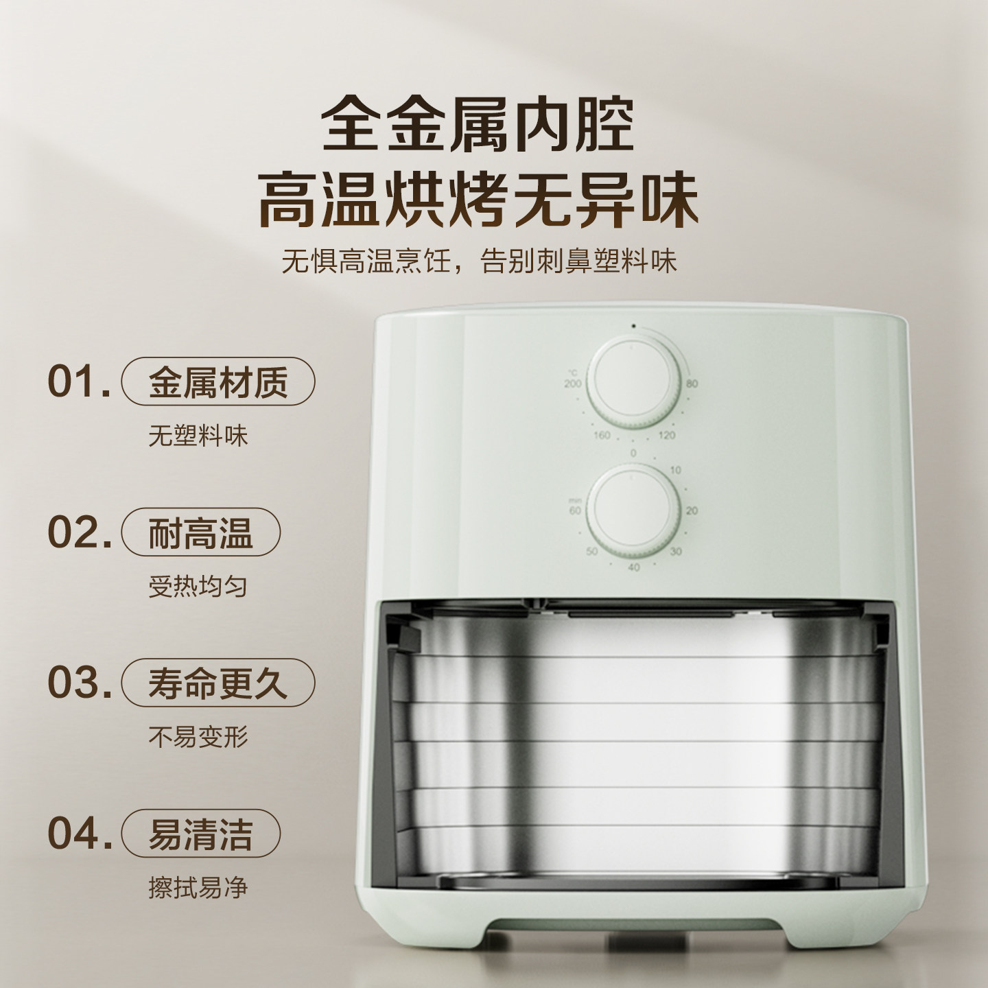 美 空气炸锅家用可视5.3L大容量金属烤箱一体电烤箱空气电炸锅