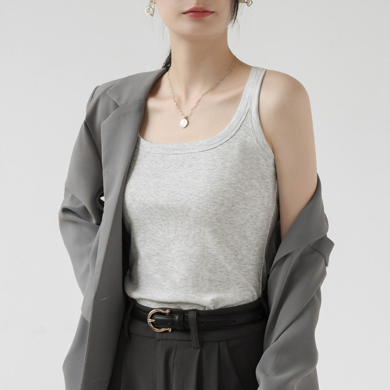 外穿显瘦修身 方领吊带背心女夏季 遮副乳无袖 内搭无袖 紧身上衣 西装